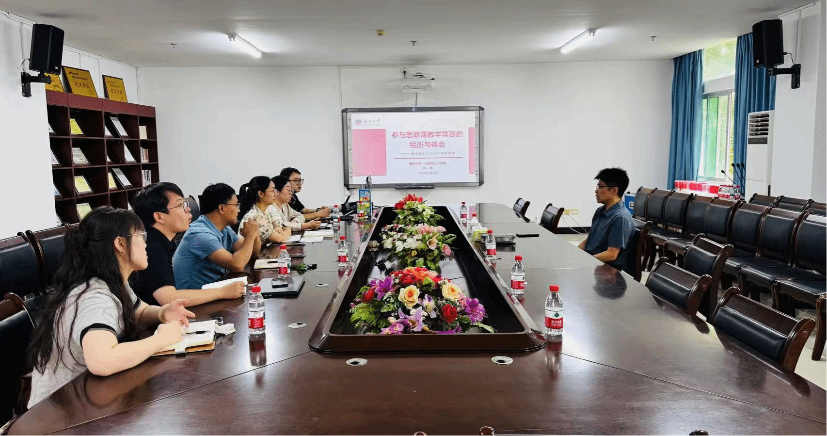 第一个阶段,刘一博副教授为公司青年教师作了题为“参与思政课教学竞赛的经历与体会——兼谈给员工怎样的课程体验”的报告。作为全国高校青年教师教学竞赛思政课组一等奖、全国高校思政课教学展示一等奖、全国高校“形势与政策”课“教学标兵”等多项国家级教学竞赛奖项和荣誉称号获得者,他结合自身的成长经历和参赛体验,介绍了各教学竞赛的基本情况,围绕提升教学设计的针对性、提高教学语言的亲和力、提振课堂氛围的重要性等分享了自己独到的经验和见解,并通过具体案例阐述了有效运用“问题链教学”讲深、讲透、讲活思政课的方式方法和设计思路。同时,刘一博副教授还针对青年教师备赛教学资源存在的问题以及竞赛过程中遇到的痛难点问题,进行了富有建设性的指导。