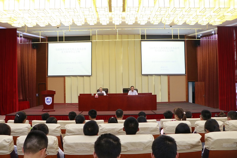 报告会上,刘相平教授从两岸关系历史由来、发展的基本态势及大陆对台工作的基本方略等部分,介绍了两岸关系的相关情况,阐明了大陆对台工作的坚定立场和基本方略。刘教授强调,自党的十八大以来,以习近平同志为核心的党中央高度重视两岸关系,准确把握两岸关系发展大势,坚决维护一个中国原则和“九二共识”,在保持对台工作大政方针连续性基础上,提出了许多富有创见的新理念新举措,推动两岸关系克难前行,在许多领域取得了突破性进展。他指出,在刚刚过去的庆祝新中国成立70周年大会上,习近平总书记进一步提出了要坚持“和平统一、一国两制”的方针,推动海峡两岸关系和平发展,团结全体中华儿女,继续为实现祖国完全统一而奋斗。