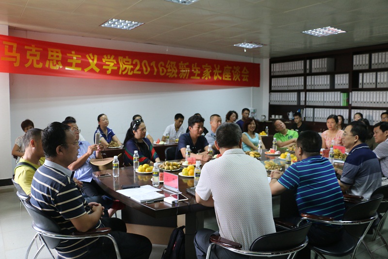 8月31日上午,公司在城西校区教学楼二楼会议室召开2016级新生家长座谈会。校员工工作处副处长、城西校区管委会副主任陈楠昕、公司党委书记段捷频、经理李德芳、副经理李辽宁出席,部分教师以及20余位新生家长参加座谈会。座谈会由思想政治教育系主任王善主持。