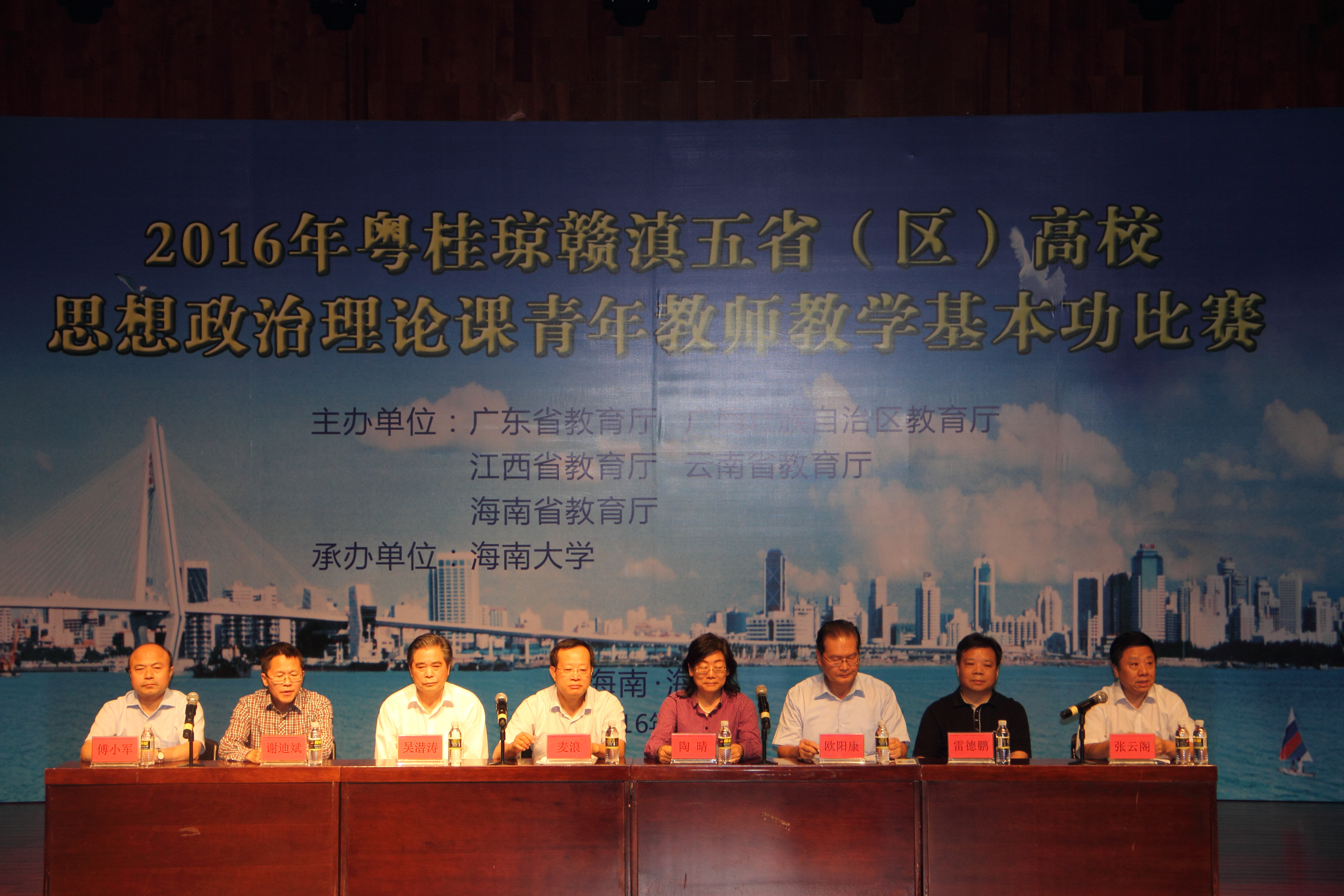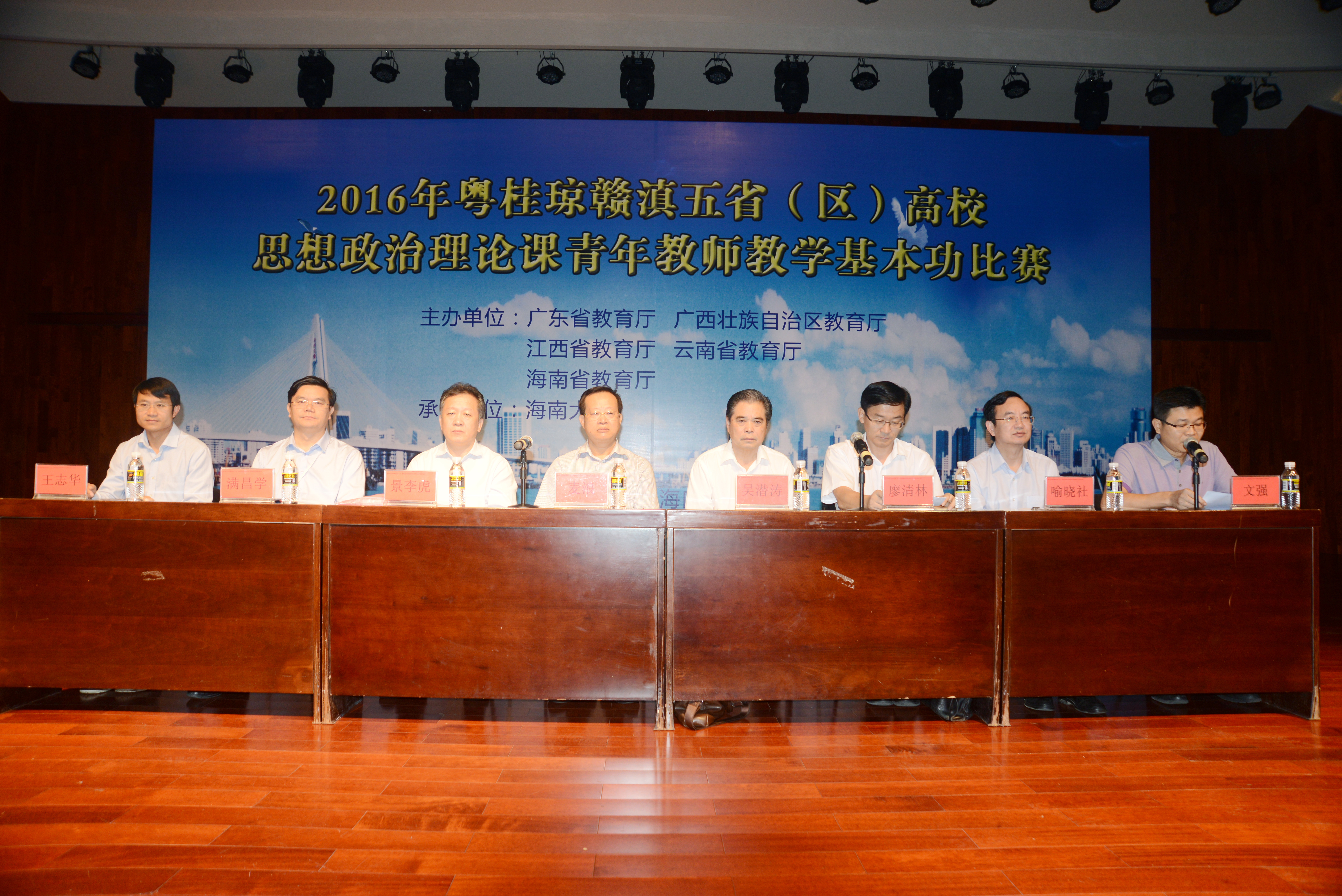 2016年11月2日—5日,第八届粤桂琼赣滇五省(区)高校思想政治理论课青年教师教学基本功比赛在公司隆重举行,省委教育工委专职副书记麦浪,广东、广西、海南、江西、云南等五省(区)教育工委、教育厅有关负责人,伟德bv1946官网党委常务副书记廖清林出席,来自五省(区)近100余名教师代表参加开幕式。会议由海南省教育厅思政处处长文强主持。