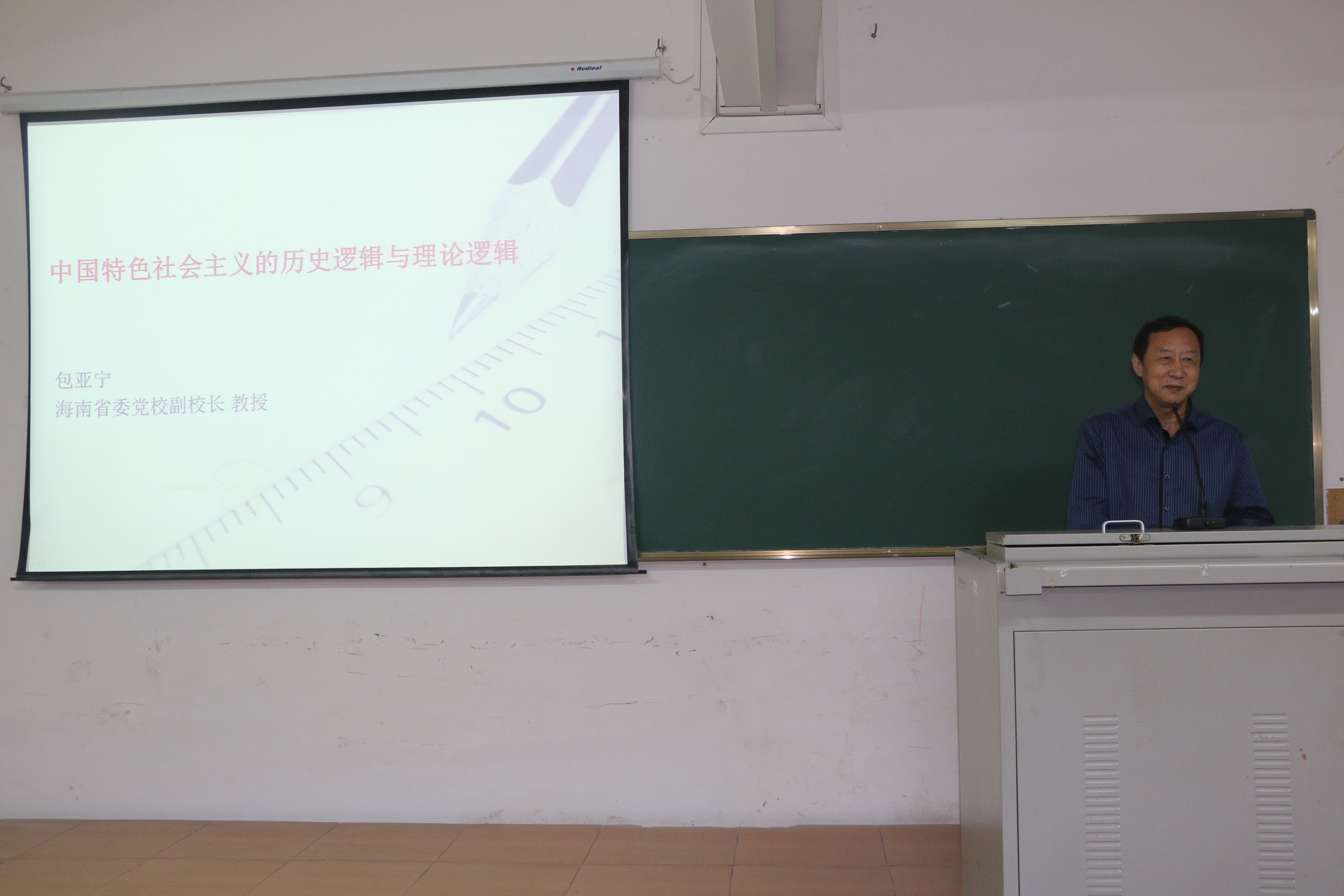12月8日晚,海南省委党校副董事长包亚宁教授以“中国特色社会主义的历史逻辑与理论逻辑”为题,深入阐述了中国特色社会主义、中国特色社会主义理论体系、中国特色社会主义制度等基本概念;他按照历史发展的时间顺序,结合当时国内外背景,剖析了马克思主义传入、扎根并改变中国历史进程的必然性,解读了中国特色社会主义形成、发展的理论逻辑以及当前面临的考验。