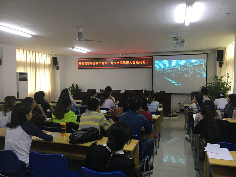 10月18日上午,公司党委认真组织师生观看中国共产党第十九次全国代表大会开幕会直播。院领导李辽宁、张井富、杨娜,部分教职工和员工100多人全程观看开幕会,直播活动在社科楼A311、A315和A618多媒体课室同步进行。