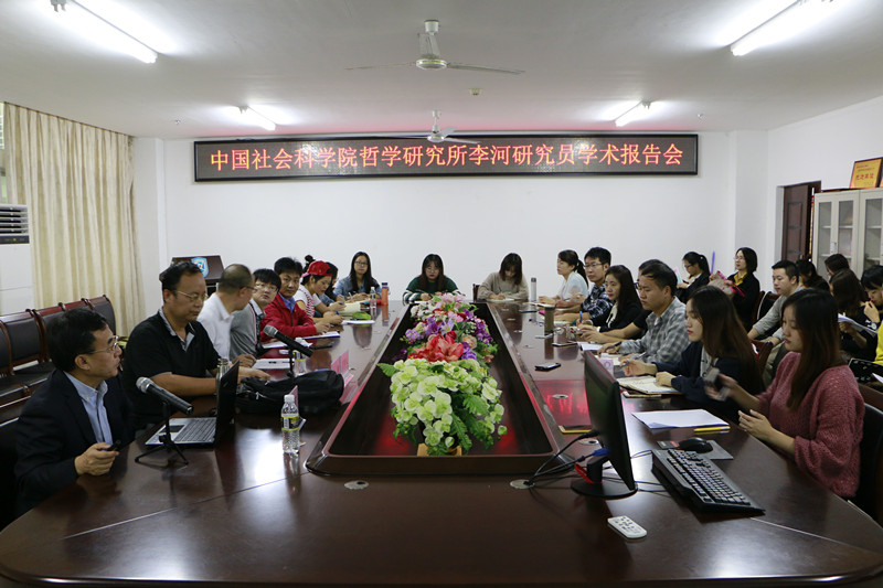 11月20日上午,伟德bv1946官网在社科楼311会议室召开了主题为“文明冲突与中国道路”的学术报告会。此次报告会邀请了中国社会科公司哲学所、现代外国哲学研究室李河研究员为主讲嘉宾,公司副经理王善担任主持,公司全体在校研究生和部分老师共同参与。