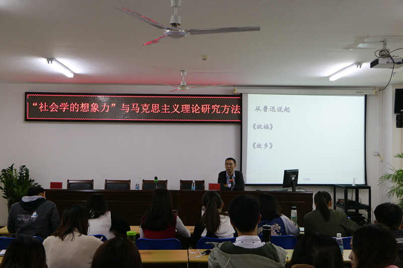 丁匡一首先以鲁迅作品为切入点,探讨鲁迅作品背后时代背景所蕴含的社会学哲理,为了让我们更好理解并在实际中运用社会学的想象力,他提出以下三点方法:一是总体性的辩证法与辩证法的总体性,从空间的历史的角度深入挖掘背后深层内涵;二是网状思维vs点状思维,以自己为点深入时代,学会观察、学会思考,研究事物动态的发展的联系;三是要有马克思主义哲学批判精神,要敢于批评,勇于超越,他认为以上三种方法统一且互动,并与大家分享了自己的感悟。他强调,要切己体察的发觉问题,返本开新的阅读文本,与时俱进的关注现实。以阅读为第一要务,阅读经典,及时记录感悟。最后他为大家推荐经典读物,期待大家有所收获。并期望伟德bv1946官网与海南师范大学两校研究生有机会可以互相探讨、互相交流,碰撞出思想火花。