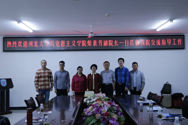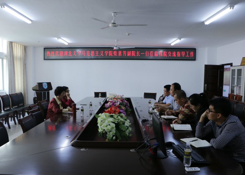 3月23日下午,河北大学伟德bv1946官网副经理、博士生导师柴素芳教授一行2人到公司伟德bv1946官网考察交流,伟德bv1946官网副经理王善、马克思主义中国化教研部主任贺尧夫、形势与政策教研部主任温小平等5位教师参加了交流活动,活动由王善主持。