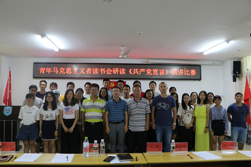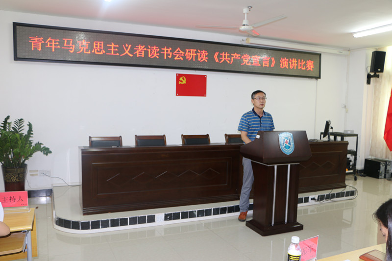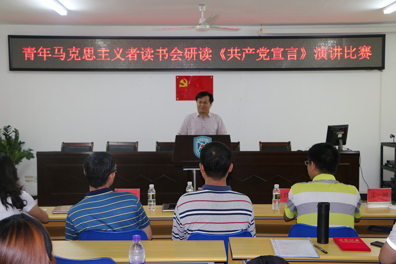 为纪念《共产党宣言》发表170周年,促进广大同学深刻感悟和把握马克思主义真理力量,提升马克思主义理论素养和语言表达能力,伟德bv1946官网青年马克思主义者读书会以重温《共产党宣言》为主题组织研读原著、撰写心得、公开演讲系列活动。5月12日下午,研读《共产党宣言》演讲比赛在社科楼A315隆重举行。伟德bv1946官网经理李辽宁出席活动并讲话,教务处副处长吴朝阳、伟德bv1946官网副经理王善、伟德bv1946官网教师王一闳、张君成、周郭军担任比赛评委。