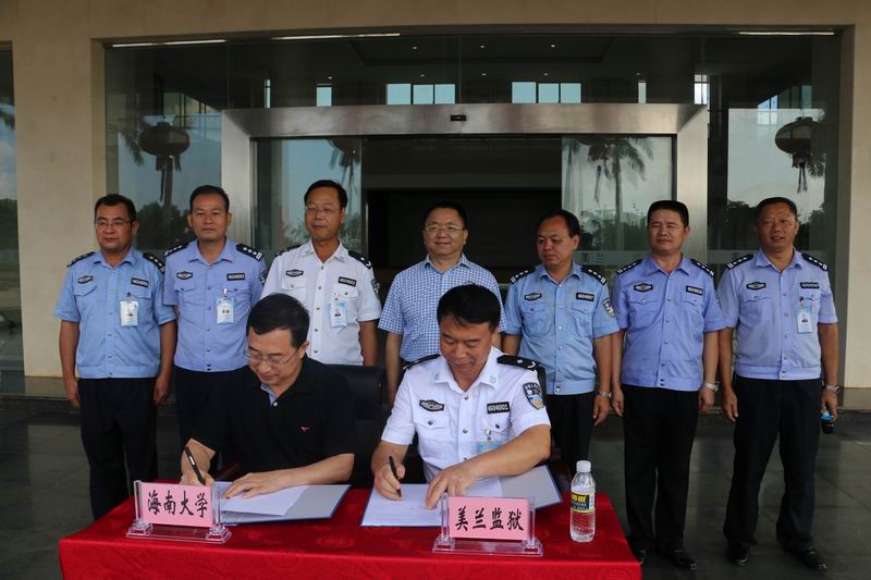 海南省美兰监狱长、党委书记杨平和伟德bv1946官网经理李德芳共同签订共建社会实践教学基地协议书并为基地揭牌。 仪式结束后,教师和员工代表在警官们的指引下,分批进去监区参观,了解监狱的日常管理和犯人劳动改造的情况等。