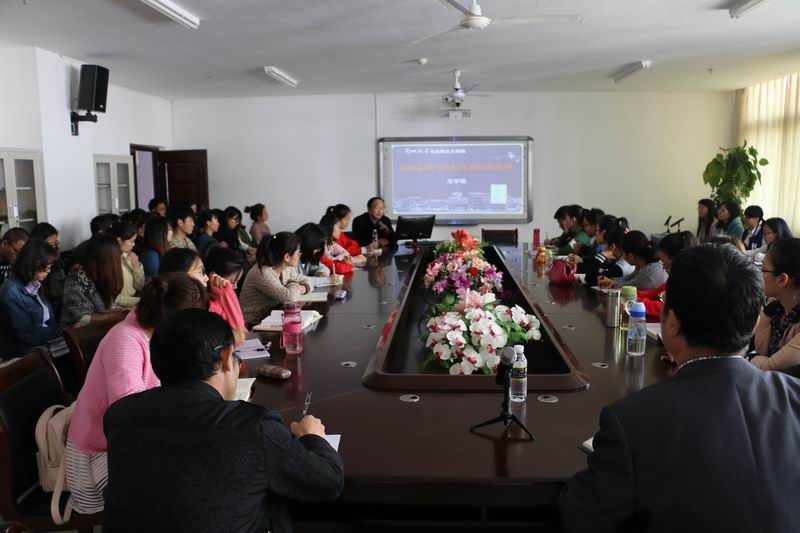 王学俭教授将“五大发展理念”贯穿课堂,从生活经历入手,以创新为核心,结合思想政治教育现状,从“创新要点:直面国家发展重大问题”、“创新前提:科学把握青年思想特点”、“创新要领:正确认识青年成长规律”、“创新核心:青年员工理想信念教育”及“创新方式:有效的工作方法和艺术”五个方面展开论述,分析青年在思想上特征和不足之处,并提出相应的解决措施。在提问环节中,同学们积极提问,针对学术报告中不理解之处和当下社会现状提出自己的观点。王教授用风趣幽默的语言一一进行了解答。