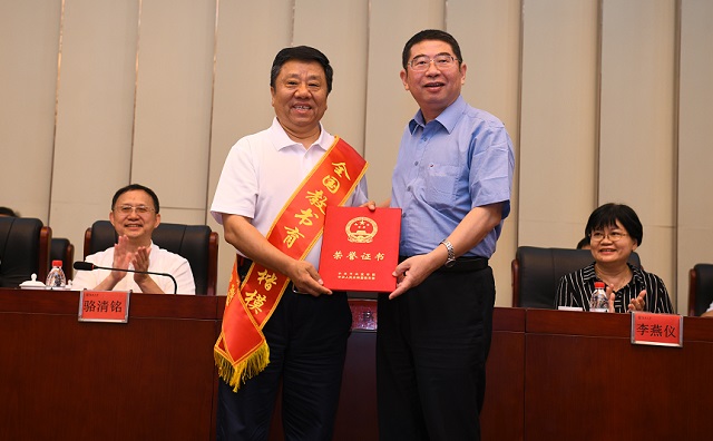 王路为全国教书育人楷模张云阁颁发证书