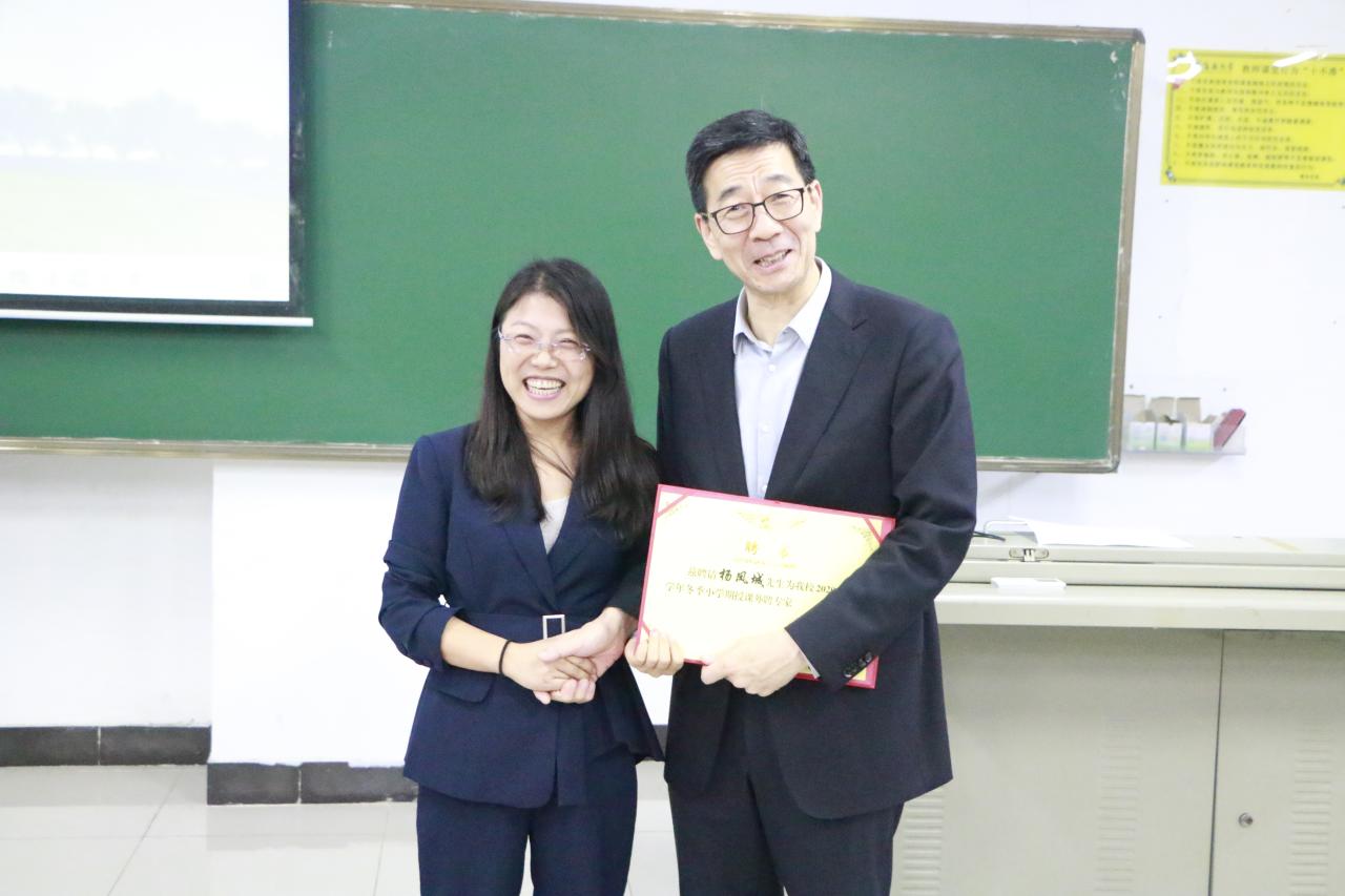2020年12月11日晚,2020-2021学年冬季小学期系列讲堂第二讲在五号教学楼114教室举行。中国人民大学杨凤城教授应邀为公司员工作以“中国共产党的文化观与文化发展战略”为主题的学术报告,副经理杨娜出席并为杨凤城教授颁发了伟德bv1946官网“冬季小学期授课外聘专家”证书。