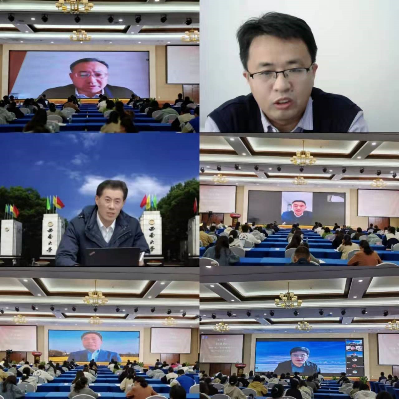 在主题发言阶段,来自西安交通大学、兰州大学、郑州大学、西南大学等15所高校的16位专家,围绕着“庆祝中国共产党成立100周年暨学习党的十九届六中全会精神”的会议主题,在“中国共产党建党一百周年的伟大历史进程及经验研究”“关于党的十九届六中全会精神解读”“高校马克思主义理论团队建设”“高校思想政治理论课教学改革与创新”等方面展开了深入探讨。