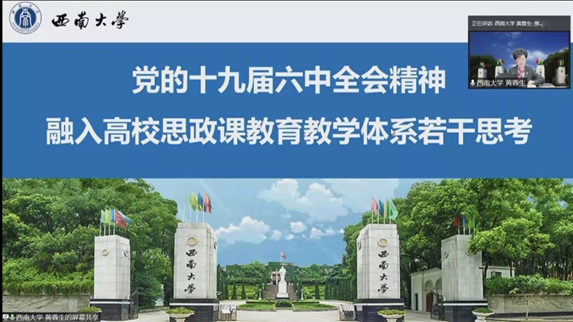 国务院学位委员会学科评议组马克思主义理论学科召集人、教育部思想政治理论课教学指导委员会咨询委员、西南大学原党委书记黄蓉生教授,中央马工程首席专家、华南师范大学伟德bv1946官网经理陈金龙教授应邀分别做了题为“党的十九届六中全会精神融入高校思政课公司产品体系若干思考”“第三个历史决议的叙史方法”的主旨报告。