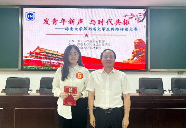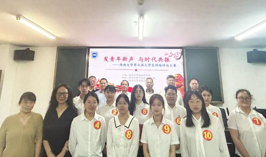 中共海南省委宣传部理论处处长曾繁诗、海南省社会科学联合会二级巡视员黄朝阳、中共海南省委办公厅调研处督查专员秦禧、海口日报社总编辑丁宁、海口广播电视台总编吴清德、海南开放大学报社编辑部主任张艳敏、海南省委网信办网络生态治理处三级调研员周宏伟担任大赛评委。