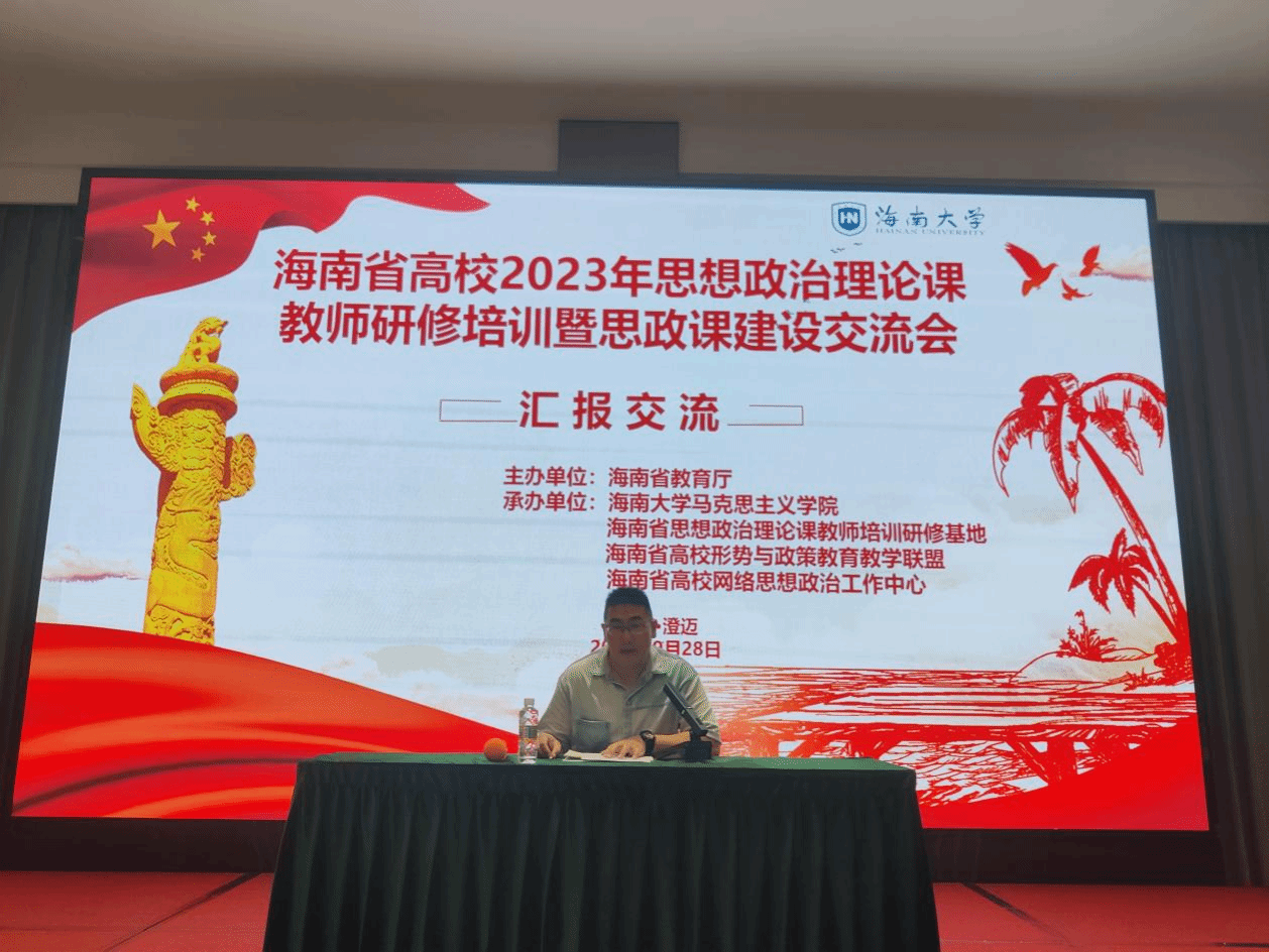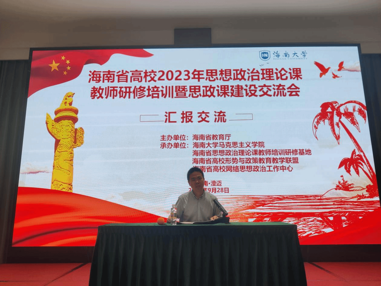 为深入贯彻落实党的二十大精神,提升我省高校思想政治理论课教师队伍建设水平,2023年9月25日至9月28日,海南省高校2023思想政治理论课教师研修培训暨思政课建设交流会在海南省澄迈县举行。本次研修班由海南省教育厅主办,伟德bv1946官网、海南省思想政治理论课教师培训研究基地、海南省高校形势与政策公司产品联盟和海南省高校网络思想政治工作中心承办,来自海南省内22所高校95位思政课教师参会。