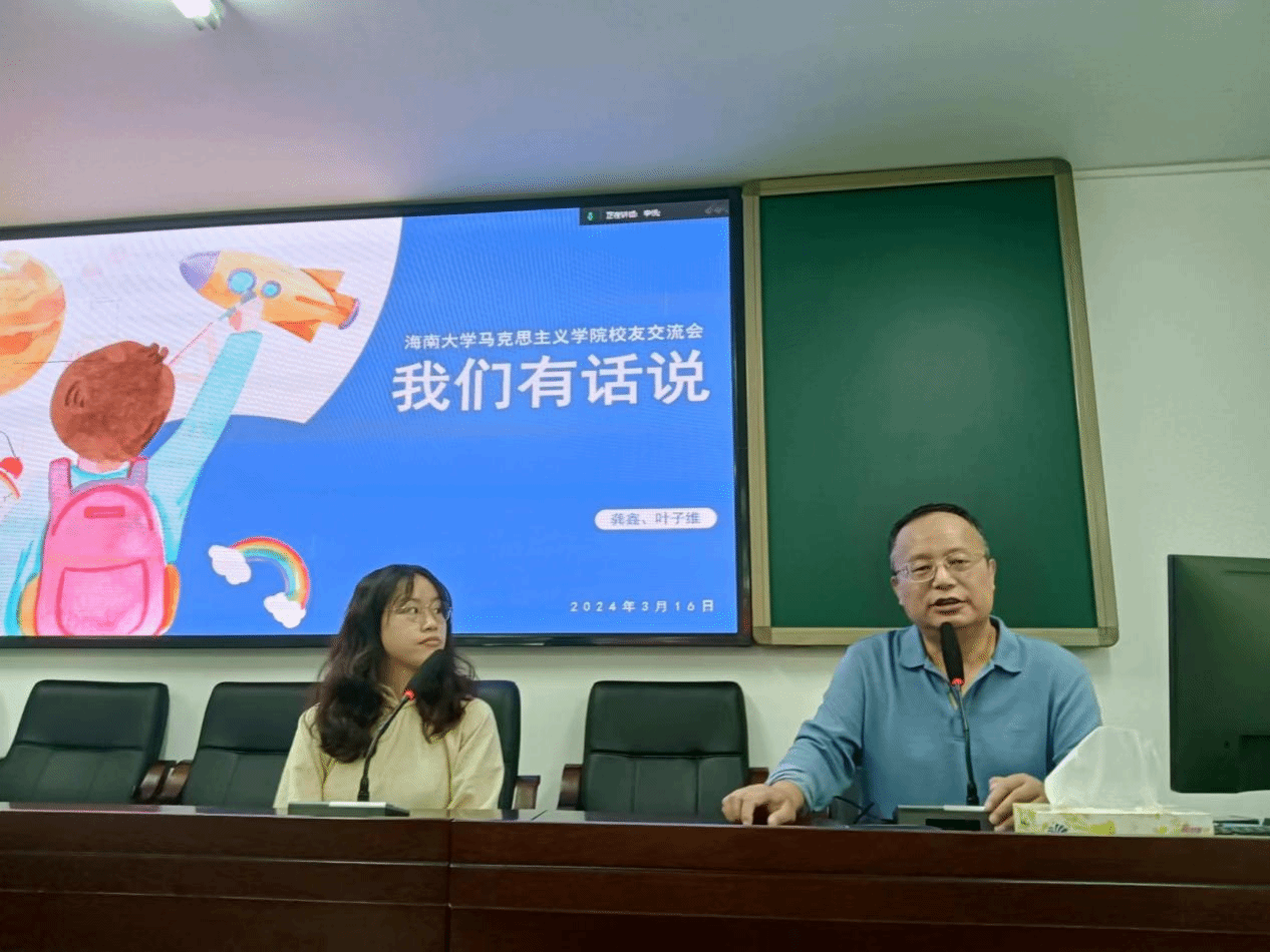 叶子维学长就“校园生活追忆与感悟”“考研考博形势分析”两方面进行了分享,深情回忆了在海大马院四年的美好生活,并详细地就马理论学科考研、读博的形势进行了分析,介绍了武大马院目前的考研情况,鼓励大家思考当下、规划未来。