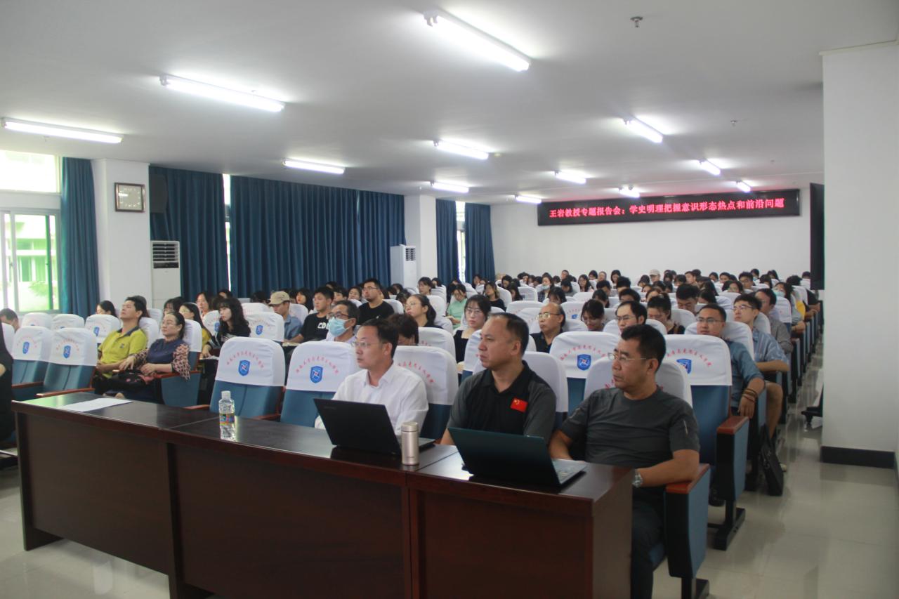 10月29日,南京航空大学伟德bv1946官网王岩教授到伟德bv1946官网指导交流,在社科楼A309为公司师生作题为“学史明理 把握意识形态热点和前沿问题” 的专题报告。院领导班子全体成员、没课的教师和全体研究生参加报告会。报告会由经理张云阁主持。