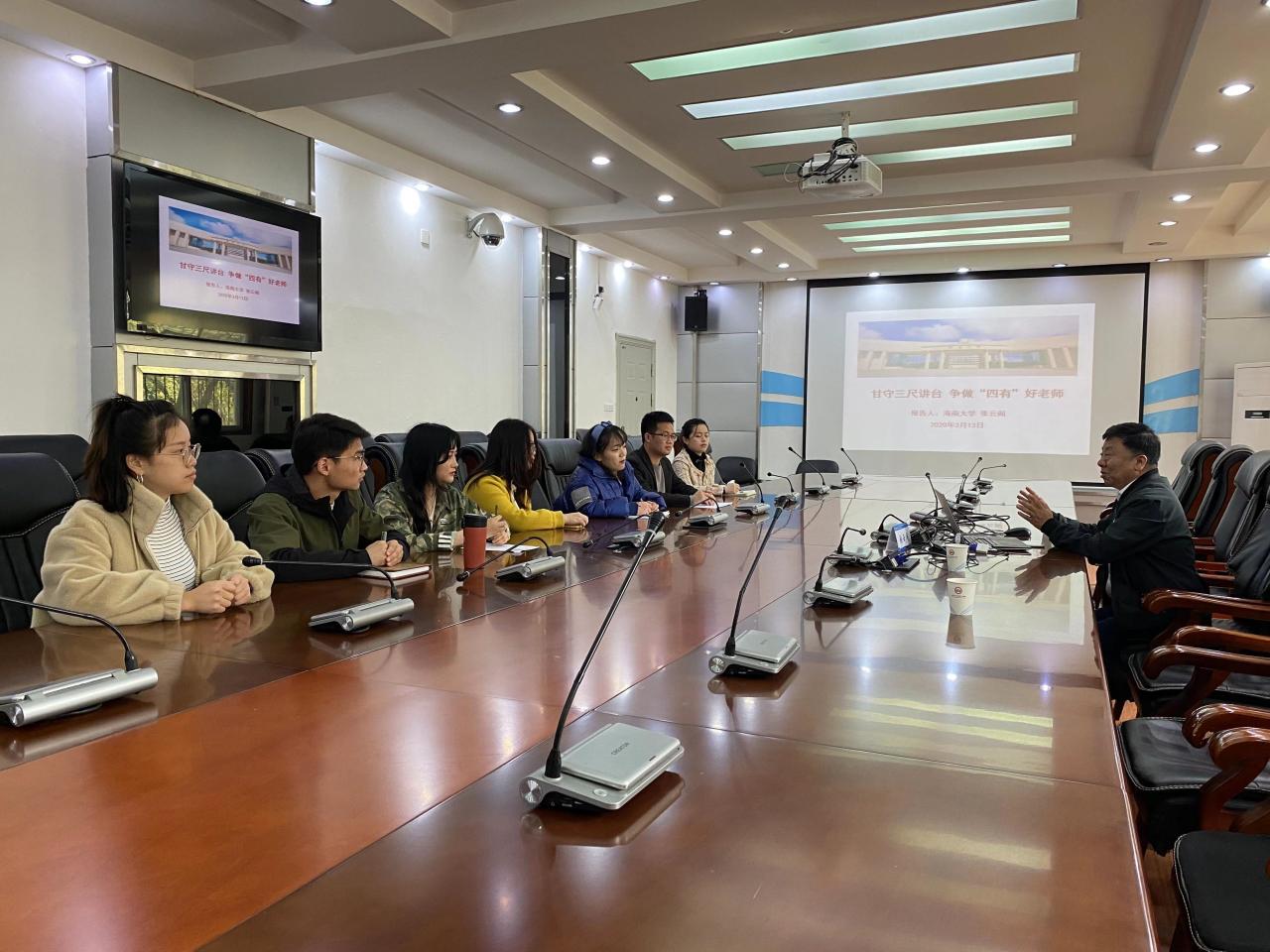 14日上午,应武汉大学伟德bv1946官网的邀请,张云阁教授又为公司师生做了一场:甘守三尺讲台 争做“四有好老师”的师德师风报告。张云阁教授从教书育人是教育的本质要求、好老师是大学的灵魂、好老师必备的条件和实现“四有”好老师的路径四个方面,结合自身的工作经历,报告了自己的理解与体会。张教授的报告内容丰富、案例生动、语言幽默,教育性强,得到了与会师生的高度评价。报告结束后,张教授还回答了师生们提出的问题。